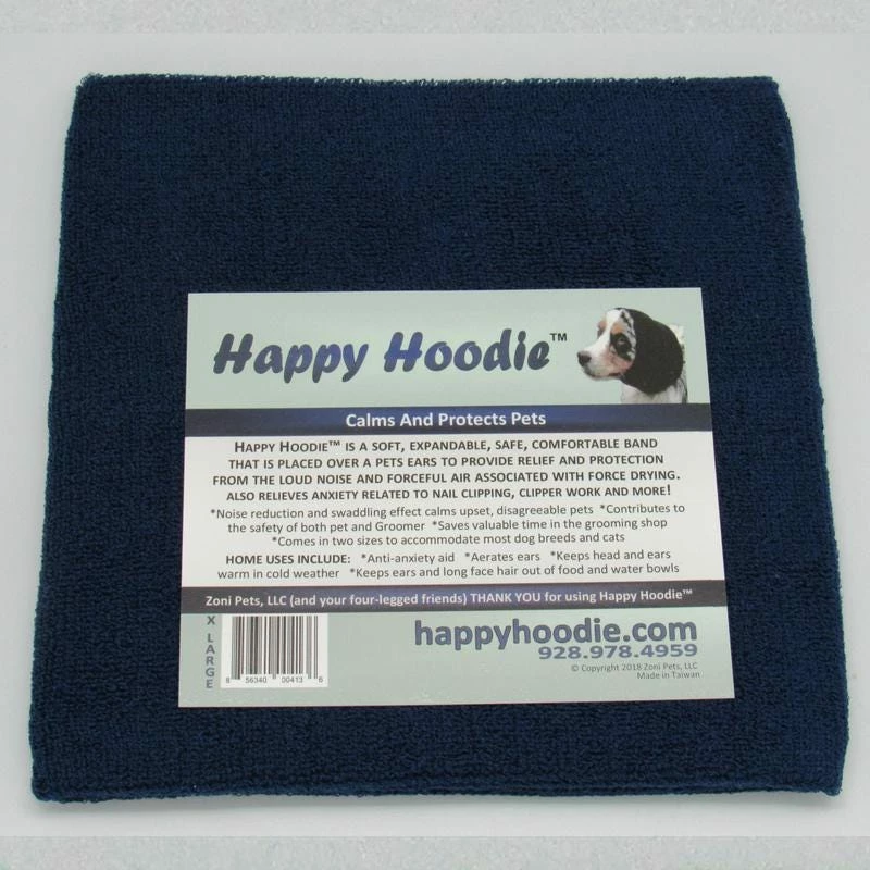 Happy Hoodie Extra Lagre is a soft, expandable, gentle compression fabric band that relieves anxiety and calms dogs during stressful situations such as force drying, thunderstorms, fireworks, toenail clipping and more! Happy Hoodie was originally created to calm and protect dogs from the loud noise and high-pressured air associated with force drying in the grooming salon. It proved to be so effective at relieving anxiety that it is now used to help calm upset pets in many situations, whether it’s at the grooming salon or in the home. Most pets welcome the use of Happy Hoodie and don’t try to remove it, unlike the cotton balls that they shake out of their ears.