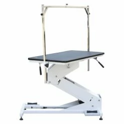 Master Equipment® Electric Z-Lift Rotating Tables combines all the features of the Master Equipment Z-Lift series with the added convenience of a tabletop that rotates 360 degrees. Rotating top allows the pet to be turned around effortlessly, making it easier for the groomer to access different areas of the pet’s body. This function can be particularly useful when grooming a pet that is not used to being groomed or is anxious. Rotating tabletop allows the groomer to remain stationary, eliminating unnecessary steps of walking around the table! You’ll wonder how you lived without it. Features easy release clamps that stop tabletop at any point in rotation, water proof UL power sockets & USB ports, convenient double foot pedal controls, strong table top board with quality rubber top, and includes both single arm and overhead arm with 2 nylon loops! Height adjust from 21.2″ to 44″ and loading capacity is 280 lbs, making this a workhorse of a table too.