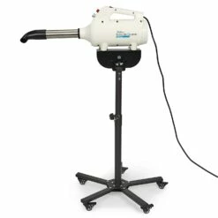 Master Equipment® PowerDri System Stand is designed for use with the PowerDri Systems Ivory (Item #TP9412 95) and Onyx (item #TP9414 17) Dryers to easily convert these dryers to stand dryers. Features 5 legs for added stability, locking casters to keep dryer in place, adjustable height, and angling mount allowing you to precisely position dryer. Adjusts from 34″ to 48″.