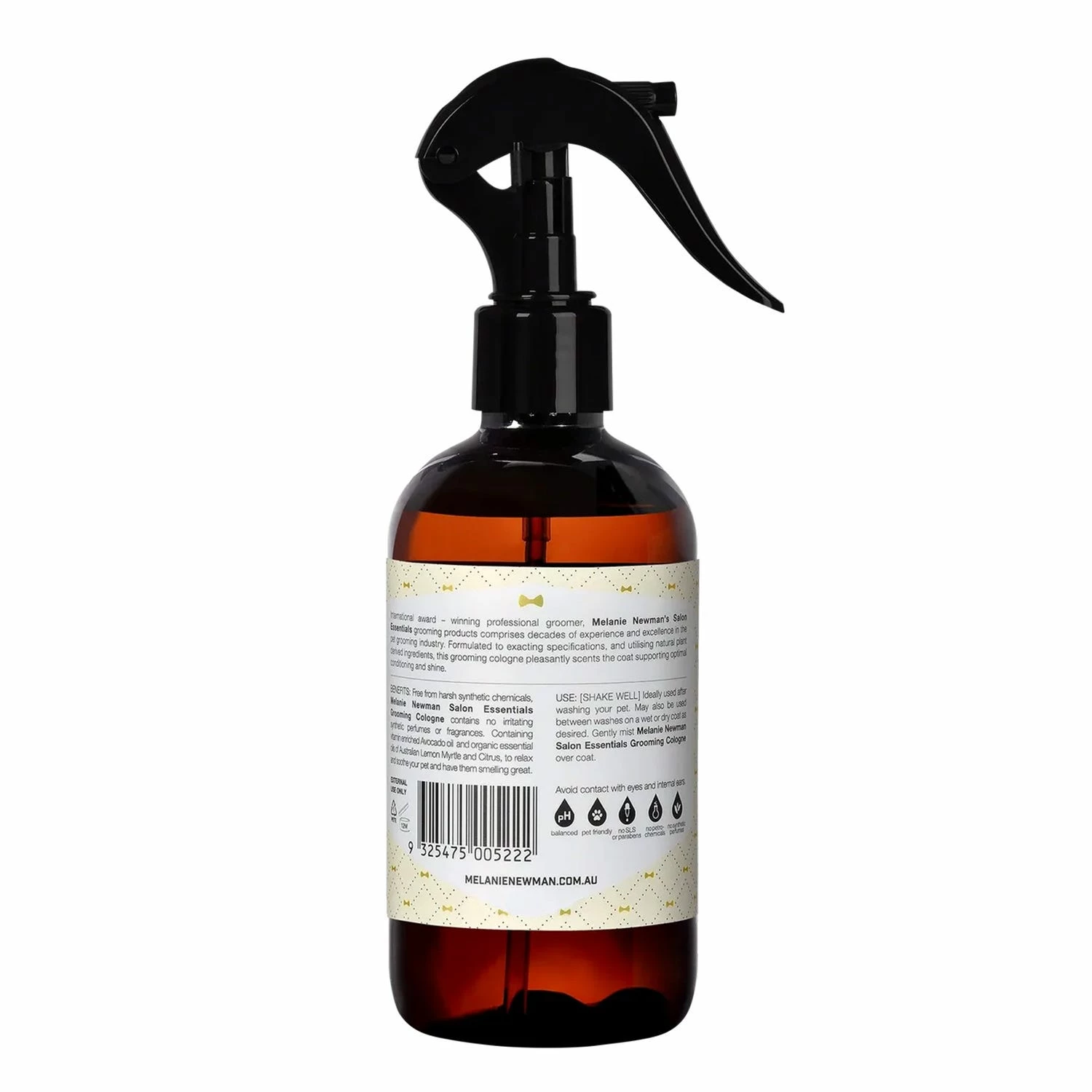 Benefits: Free from harsh synthetic chemicals, Melanie Newman Salon Essentials Grooming Cologne contains no irritating synthetic perfumes or fragrances. Containing vitamin enriched Avocado oil and organic essential oils of Australian Lemon Myrtle and Citrus, to Refresh and soothe your pet and have them smelling great.