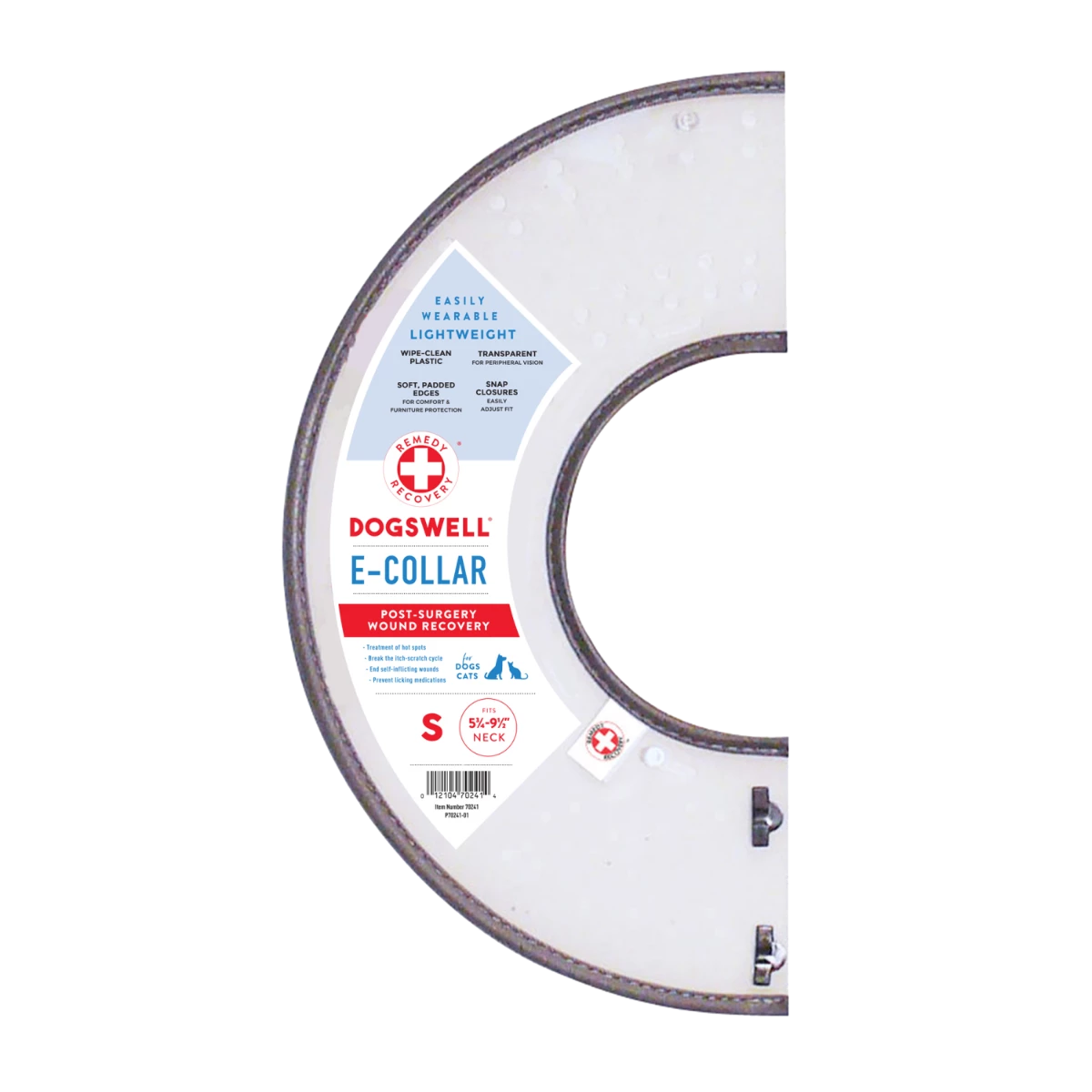 This E-Collar’s rigid design makes it the most effective in preventing the animal from reaching wounds during periods of recovery. Dogswell® Remedy + Recovery® Rigid E-Collars are perfect for post-surgery or wound recovery, treatment of hot spots, breaking the itch-scratch cycle, helping your pet stop licking medication and end self-inflicting wounds. Our soft padded edge design and lightweight material makes this product comfortable for your pet and helps to protect your furniture.