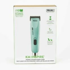 Get Inspired! The Wahl KM Inspire 2-Speed Corded Clipper is a professional 2 speed corded clipper for professional dog, cat and equine grooming. Lightweight, slim body design for all-day grooming with quiet clipping. Balanced & low vibration to prevent fatigue. Constant speed control to power through all coat types. Powers through thick, curly, and matted coats on dogs, cats, and horses. Brushless motor means quieter and more efficient operation with higher speeds. Easily change blades with a press of the button. 2 speeds, 3000 and 3600 SPM for precision cutting and smooth performance. Heavy duty 14′ cord allows for more freedom of movement. Hanging loop for space -saving storage. Includes #10 Ultimate Competition Series Blade, 14’ Cord, 4 Stainless Steel Guide Combs, Cleaning Brush, and Blade Oil. Eco-friendly packaging.